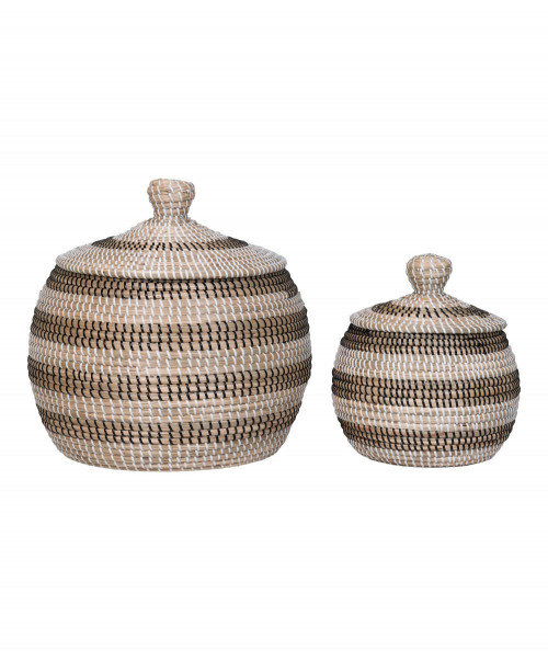 Ipoh Kurve er et elegant sæt af 2 kurve, lavet af naturligt søgræs med et smukt mønster i farverne natur, hvid og sort. Kurvene kombinerer traditionelt håndværk med moderne design og tilføjer et stilfuldt element til din indretning.