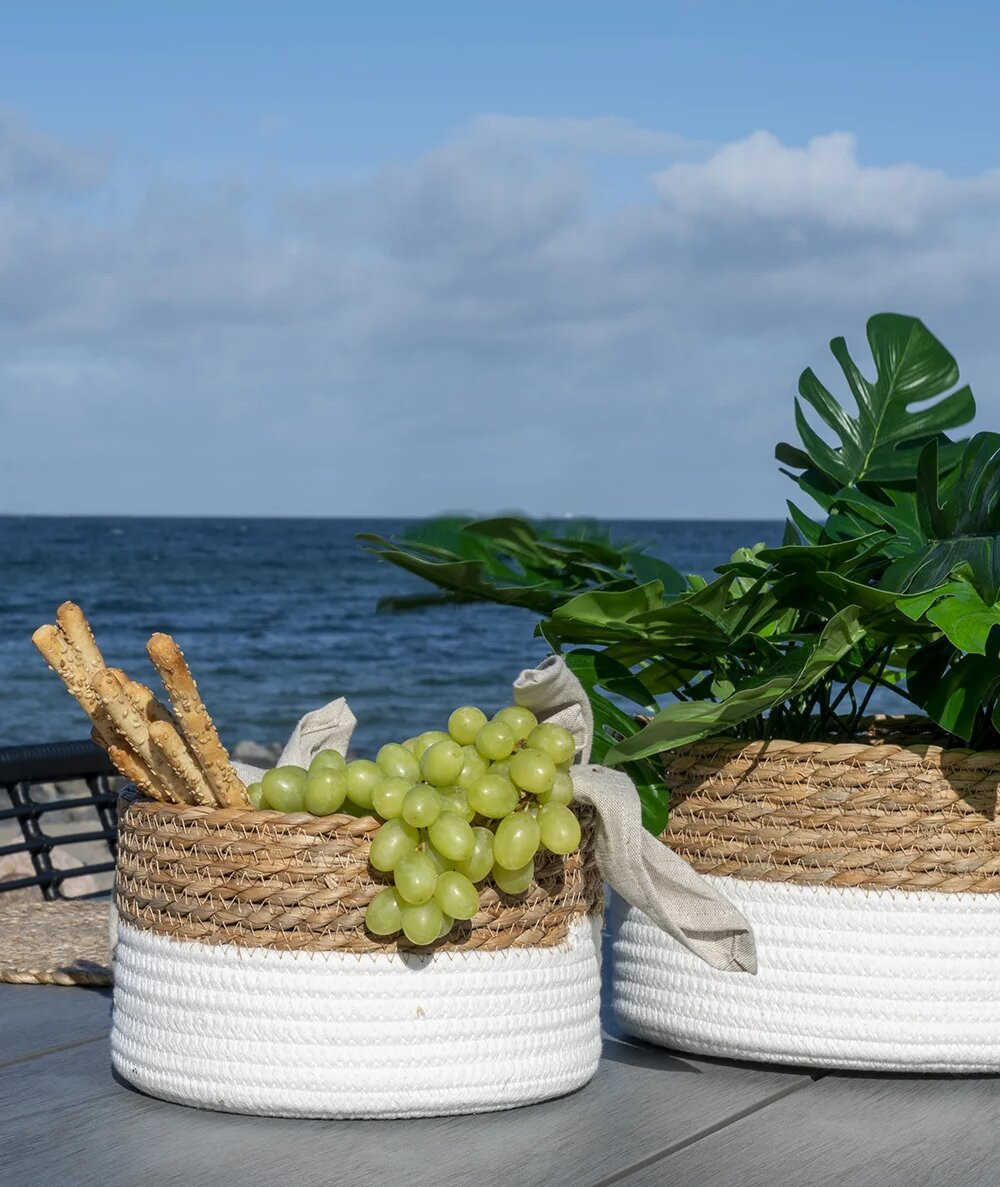 Hyg op med Mirabelle kurve i dit hjem. Kurvene består af 2 stk og kan bruges til flere forskellige ting. Lad dem evt. stå på badeværelset og hygge op. Læg evt. vaskeklude i eller sæber. Du kan også stille kurvene på spisebordet inde og ude. Sæt evt. en plante i den ene og brug den anden til brød og vindruer.