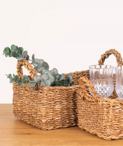 Giv dit hjem et strejf af natur med de smukke Morella kurve, som er lavet af naturligt søgræs. Dette sæt med to kurve bringer en rustik charme ind i din indretning og er perfekte til både opbevaring og dekoration. Kurvenes naturlige farve og tekstur tilføjer varme og organisk skønhed til ethvert rum.