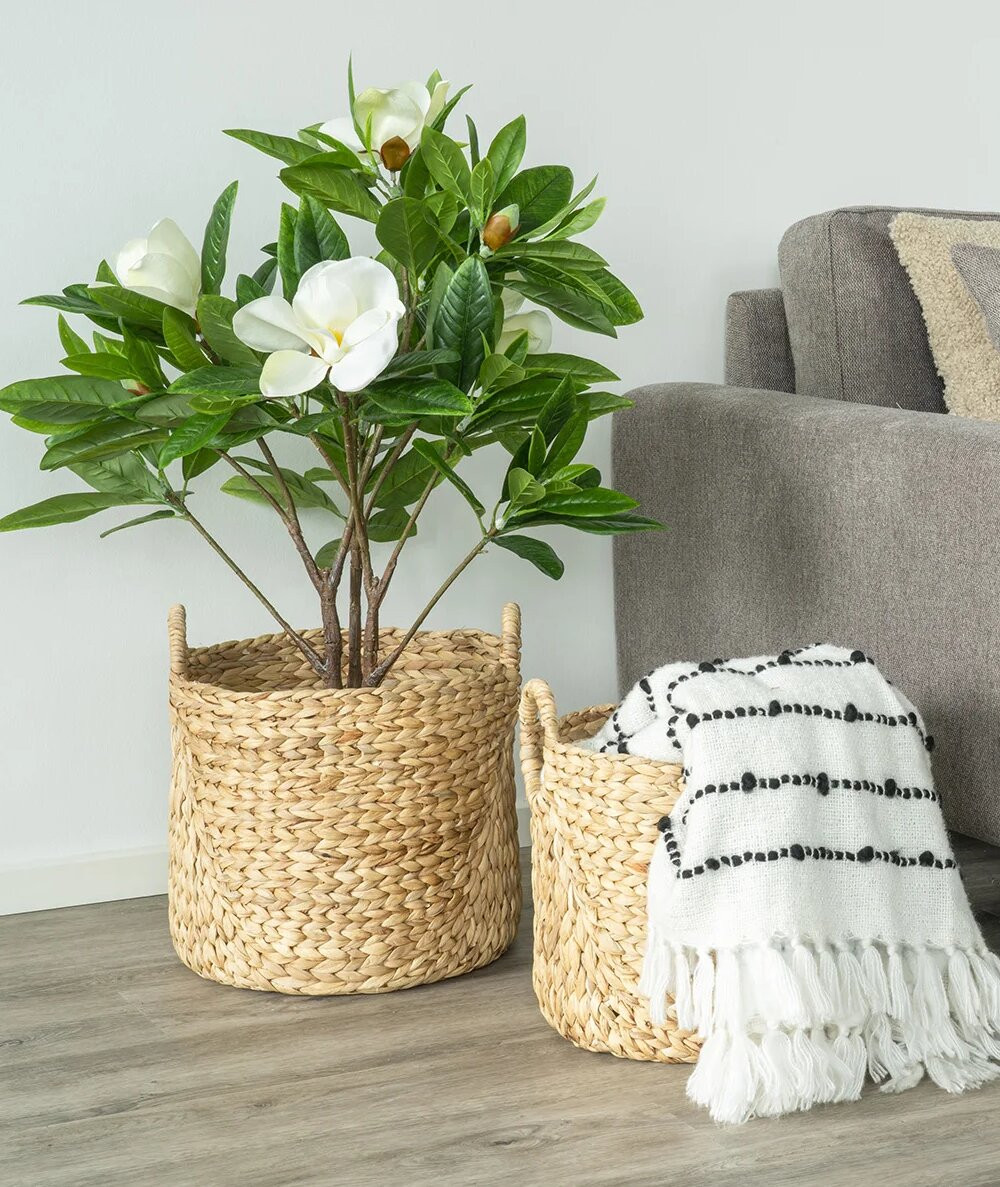 Stil dine runde Passo kurve fra House Nordic under dit konsolbord i entreen eller på nogle hylder på værelset. kurven har et naturligt og flot udtryk, som tilføjer dit hjem en varm farve. Kurve sættet er lavet i vandhyacinth og består af 2 kurve.