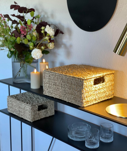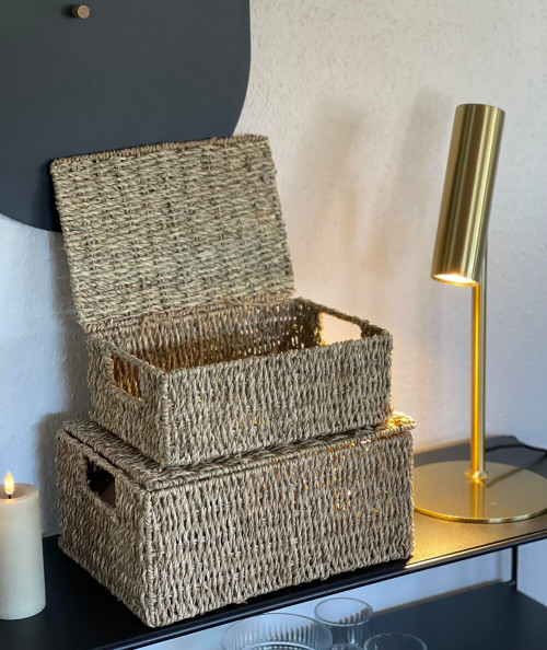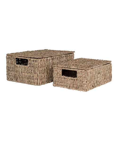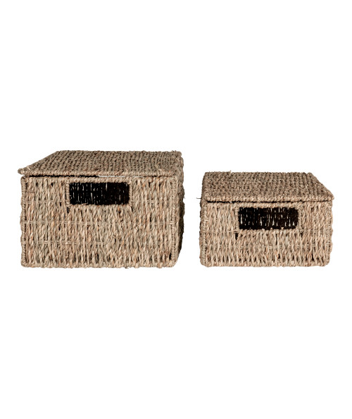 Kurvesættet giver et varmt og hyggeligt udtryk til hjemmet. Kurvene er lavet i søgræs og har begge et låg, som kan åbnes. Ønsker du at skjule nogle papirer, små dimsedutter eller andet, så det ikke roder, så er de fine kurve et oplagt valg. Kurvesættet består af 2 kurve.