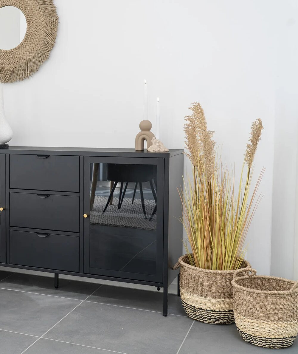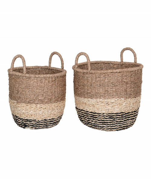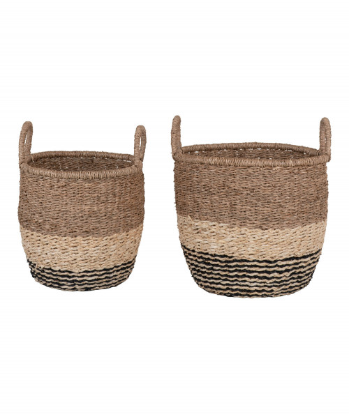 De smarte Ginette Kurve er lavet i søgræs og har farverne natur/brun/sort. Kurvene består af et sæt af 2 stk. i to forskellige størrelser. Kurvene kan bruges på forskelligvis i hjemmet. Hyg evt op med en kunstig plante, magasiner, plaid eller legetøj på badeværelset.