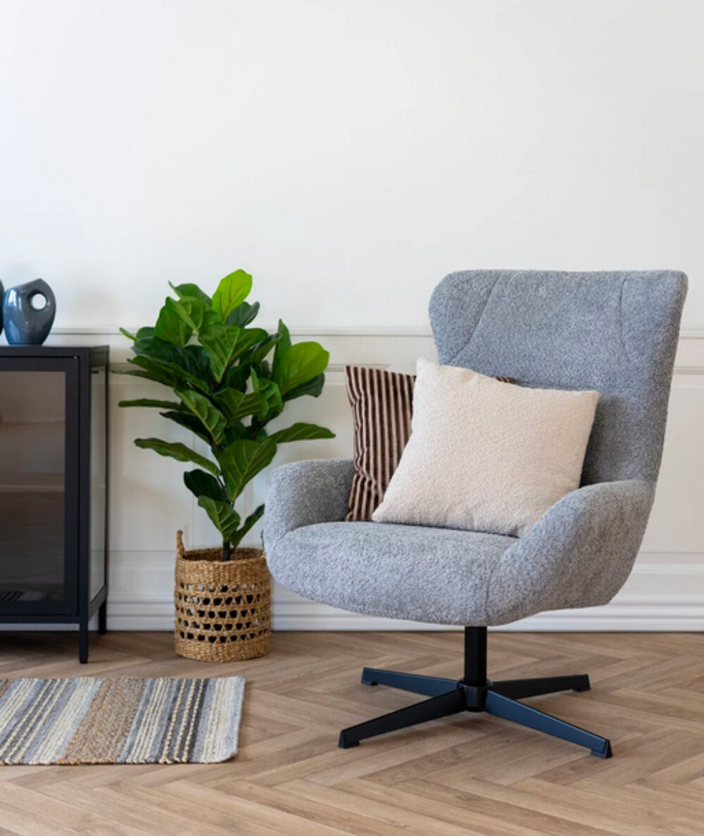 Bescia Loungestolen er en perfekt kombination af komfort og design, udført i en smuk mørkegrå polyester, der skaber en hyggelig og indbydende atmosfære i dit hjem. Stolens solide konstruktion med stål og krydsfiner sikrer både holdbarhed og komfort, mens den sorte metalbase giver et moderne og stilrent udtryk. Med den praktiske drejefunktion kan du nemt tilpasse stolen til din ønskede position, hvilket gør den ideel til afslapning.