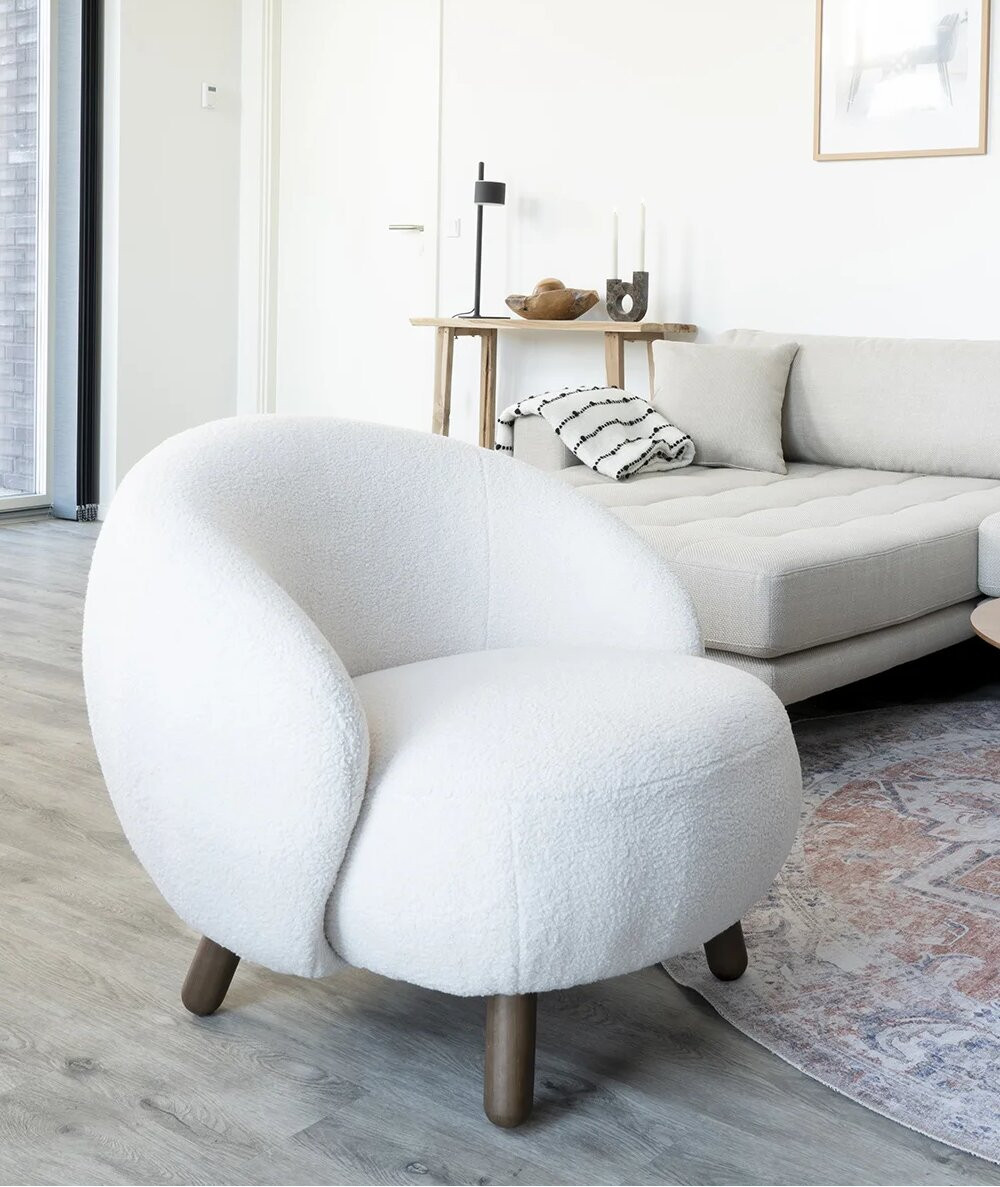 Den vamsede Savona lænestol har et spændende og unikt udtryk. Stolen har et hyggeligt design og er en stol, man får lyst til at sidde og hygge i. Stolen passer fint ind i den nordiske indretningsstil, da den byder ind til skøn stemning. Den runde form og det bløde hyggelige kunstige lammeskind og valdnødfarvede ben giver tilsammen spændende kontrast.