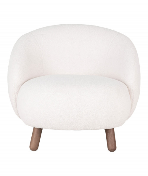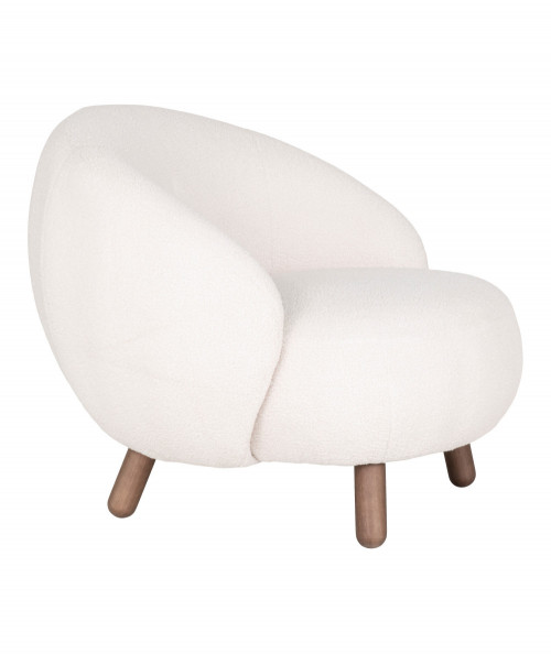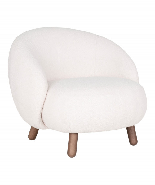 Savona Lænestol i hvid kunstig lammeskind med valnødfarvede ben