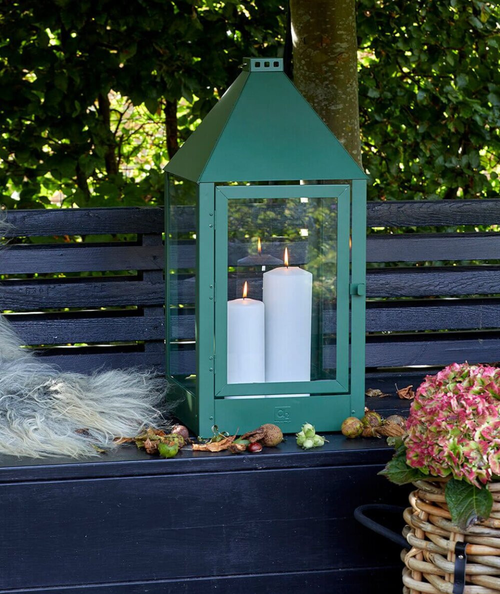 A2 Living præsenterer den robuste og funktionelle helårslanterne i galvaniseret metal, lakeret i en elegant olivengrøn farve. Lanternen er designet med en praktisk og let anvendelig magnetlukning.