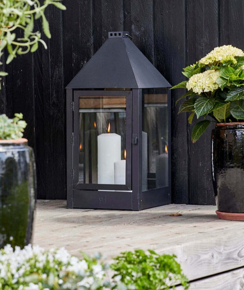 A2 Living præsenterer den robuste og funktionelle helårslanterne i galvaniseret metal, lakeret i en elegant sort farve. Lanternen er designet med en praktisk og let anvendelig magnetlukning.