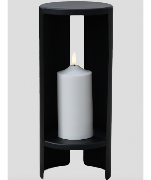 Denne store lanterne er designet med et stilrent og moderne udtryk, der passer ind i både minimalistiske og klassiske indretninger. Med sin enkle sorte ramme og bløde LED-flamme skaber den en varm atmosfære, uanset hvor den placeres. Den kan stå smukt på en kommode i stuen, som et hyggeligt element i entréen, eller som dekorativ belysning på spisebordet til middagen. Takket være dens robuste design er den også velegnet til udendørs brug i sommer månederne – perfekt til at lyse op på terrassen, altanen eller i haven på lune sommeraftener. Lanternens alsidige design gør, at den elegant kan integreres i ethvert rum eller udeområde og tilføje både hygge og en moderne æstetik.