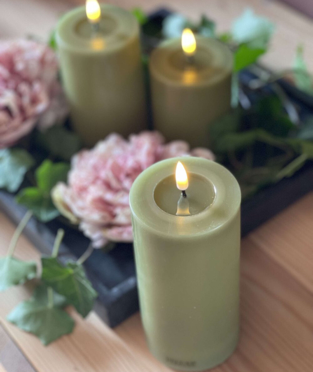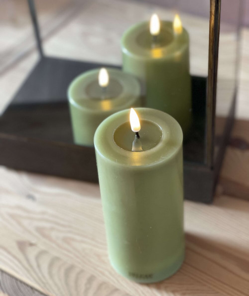 Deluxe homeart LED olivengrøn bloklys str. 7,5 x 15 cm