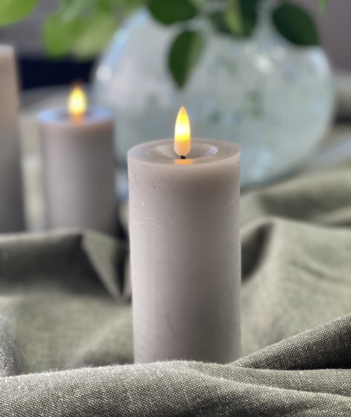 Skab hyggelig stemning i dit hjem med vores grå LED bloklys. Bloklyset måler 6x15 cm og er beklædt med voks. Den er med til, at give en varm og indbydende atmosfære. Bloklysets grå farve tilføjer et luksuriøst præg, der passer perfekt til ethvert interiør.