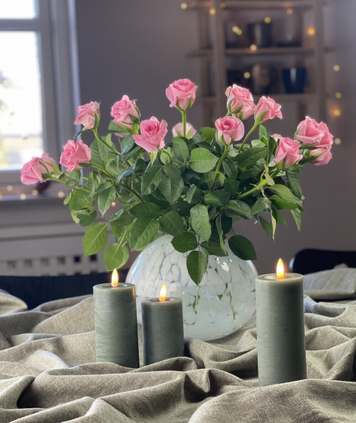 Skab hyggelig stemning i dit hjem med vores grønne LED bloklys. Bloklyset måler 6x15 cm og er beklædt med voks. Den er med til, at give en varm og indbydende atmosfære. Bloklysets grønne farve tilføjer dit hjem et roligt look, der passer perfekt til ethvert interiør.