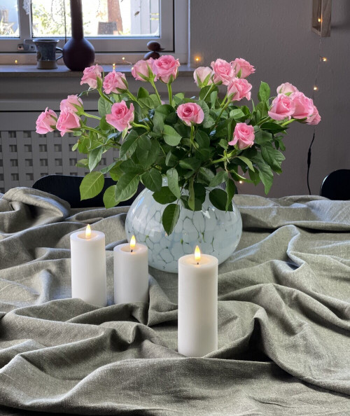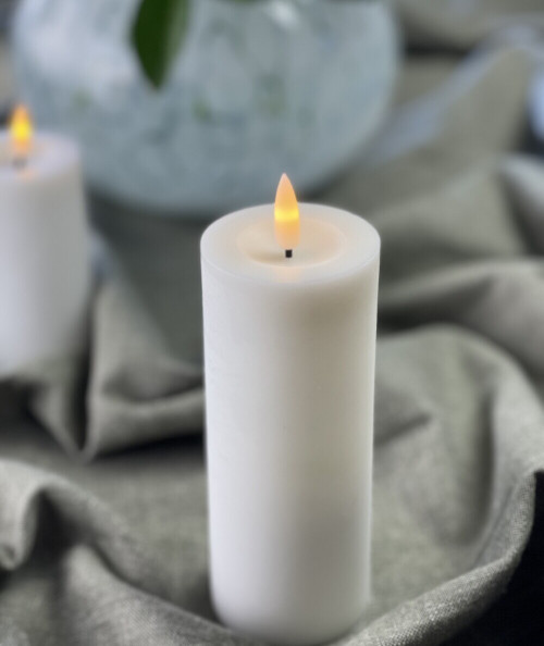 Skab hyggelig stemning i dit hjem med vores hvide LED bloklys. Bloklyset måler 6x15 cm og er beklædt med voks. Den er med til, at give en varm og indbydende atmosfære. Bloklysets hvide farve tilføjer et luksuriøst præg, der passer perfekt til ethvert interiør.