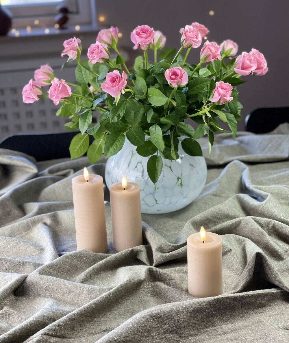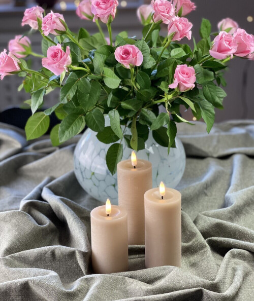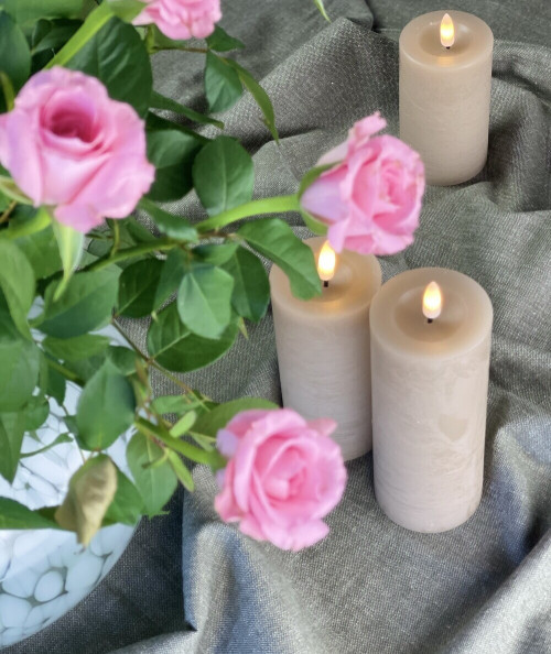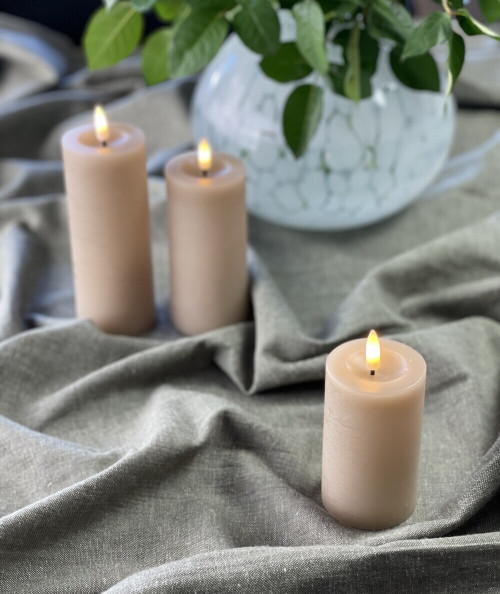 Vores LED bloklys er meget naturtro og den flotte sand farve giver et tidsløst og alsidigt udseende. Det passer til enhver indretningsstil. Lad det hygge op i stuen, soveværelset, badeværelset eller på terrassen udenfor.