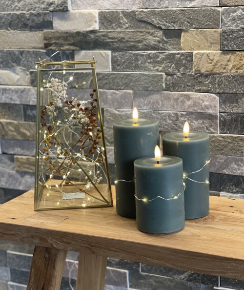Skab magi og hygge i dit hjem med vores LED Bloklys i grøn, som indeholder 3 lys og fjernbetjening. Dette stilfulde og smarte sæt skaber en unik atmosfære i dit hjem, med det hyggelige, flimrende lys fra vores LED bloklys. Kombiner belysningens skønhed med praktisk fjernbetjening, så du kan tænde og slukke lysene uanset hvor du er i dit hjem.