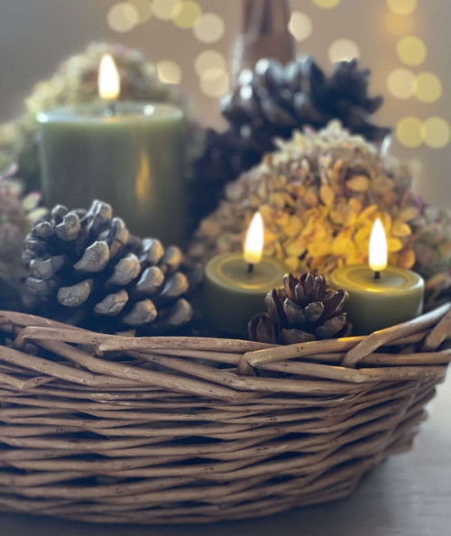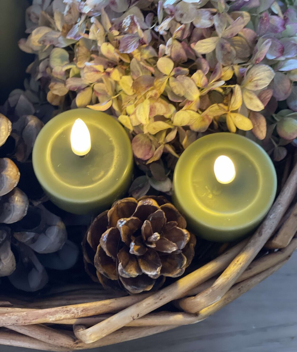 Deluxe homeart LED olivengrøn fyrfadslys - 2 stk.