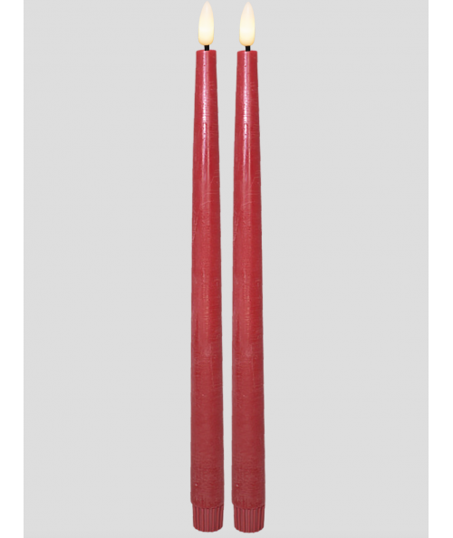 Koniske lys i mørkerød 2 stk. Ø2,2 x H34 cm