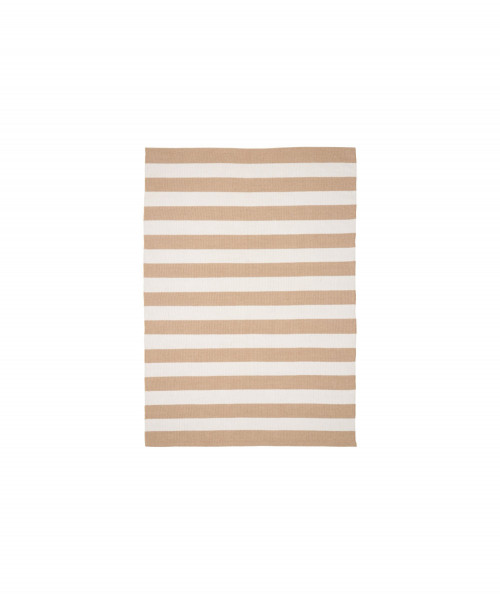 Flot løst tæppe til udendørs brug. Tæppet er lavet i 100% genanvendt plast og hygger op på terrassen. Farverne på tæppet er beige og off white og det måler 200x300 cm. Skab små oaser med løse tæpper. Det er med til, at skabe hyggelig stemning i uderummet.