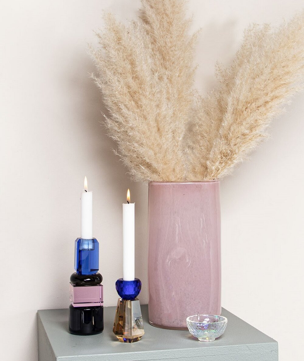 Den flotte Hyacint lysestage fra House of Sander er håndlavet og der kan derfor være små variationer. Det er med til at gøre lysestagen unik på sin helt egen særlige måde. Lysestagen har et utroligt smukt design og har 3 forskellige farver som står smukt i kontrast til hinanden. Det er lyseblå, mørkeblå, lyserød og røget. Elsker du farver i din indretning, så vil du elske denne lysestage. Lysestagen kommer i en fin gaveæske, så den passer perfekt til at give i gave. Lysestagen er lavet i glas og giver et enormt flot lysspil om aftenen når det er mørkt. Lysestagen sælges enkeltvis.