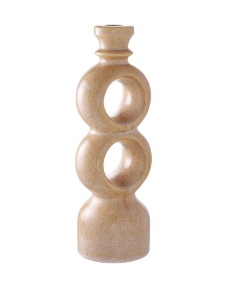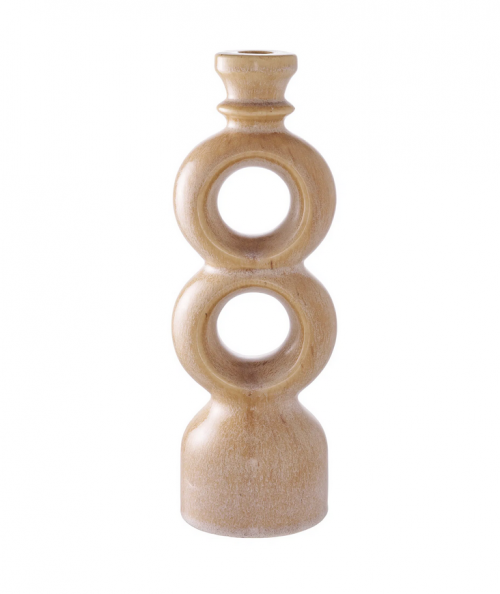 Giv dit hjem et strejf af varme og elegance med denne smukke lysestage i brun keramik. Med sit organiske og skulpturelle design bliver den ikke bare en praktisk lyskilde, men også et kunstværk i sig selv.