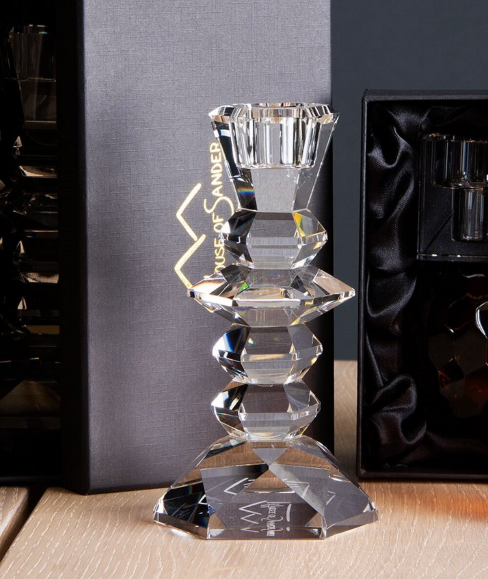 Smuk Viola lysestage fra House of Sander i klart krystalglas. Denne lysestage er krydret med nostalgi og med moderne stil. Lysestagen har et robust og eksklusivt design, som leder tankerne hen på flotte krystaller. Lysestagen står smukt på kommoden, spisebordet eller sofabordet hvor den kan sprede skøn stemning. Lysestagen er særligt smuk om aftenen, når der kommer lys i. Lyset changerer i glasset og tilføjer hjemmet en særlig stemning. Lysestagen sælges som et stk.