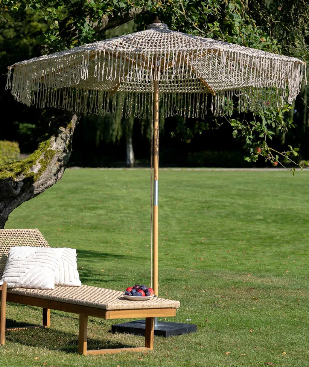 Martos hæklet parasol er det perfekte valg for dig, der ønsker en elegant og unik skygge-løsning med et strejf af boheme. Uanset om du vil tilføje et stilfuldt element til din terrasse, skabe en hyggelig krog i haven eller tage den med til stranden, vil denne parasol bringe et naturligt og afslappet udtryk til dit uderum. Bestil din Martos hæklet parasol i dag og nyd en sommer fyldt med stil, komfort og skyggefulde øjeblikke.