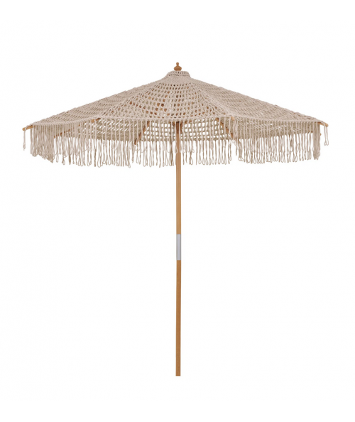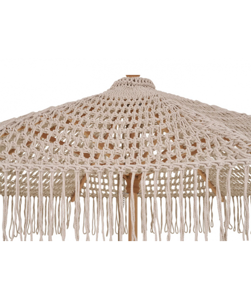 Martos hæklet parasol er den perfekte tilføjelse til ethvert udendørsområde, hvor du ønsker en kombination af stil og funktionalitet. Med sin smukke hæklede bomuldsdug og dekorative frynser bringer denne parasol et eksklusivt, boheme-inspireret look til din terrasse, altan eller have. Den naturlige beige farve og materialevalget gør, at den smelter perfekt ind i omgivelserne og skaber en harmonisk atmosfære.