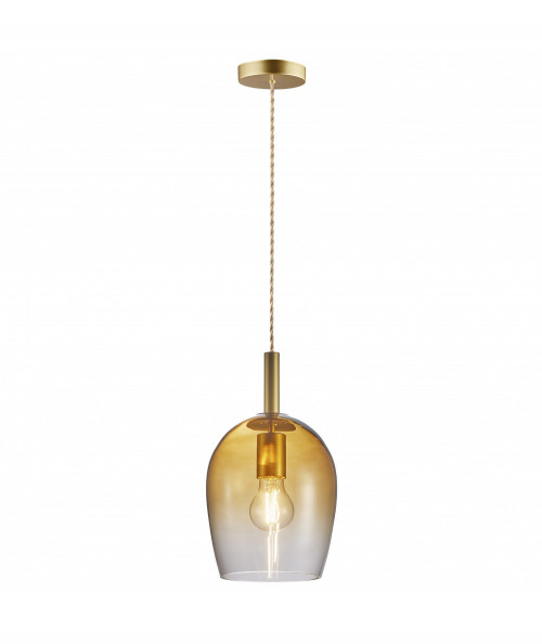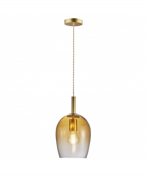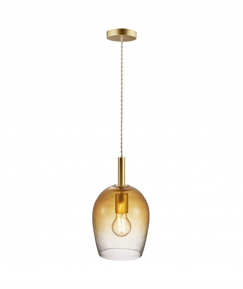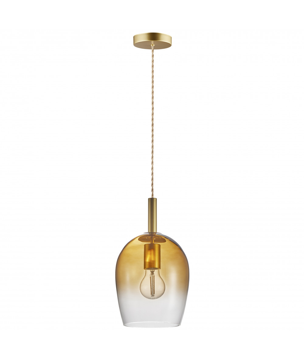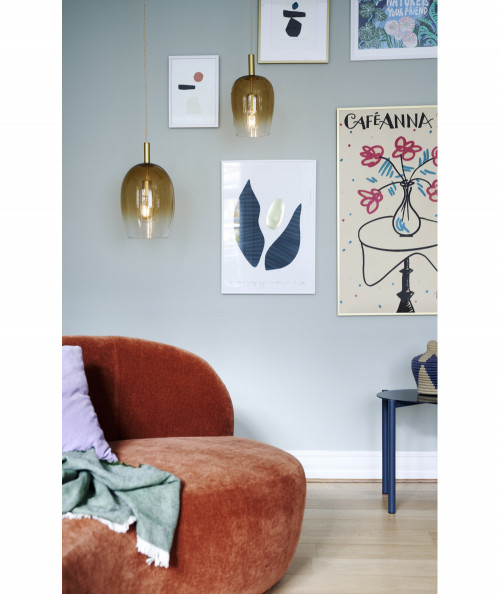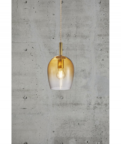 Den flotte Uma pendel har et flot design. Pendlen har gennemsigtigt glas med en smuk rav detalje. Det er en pendel, der giver varme til indretningen og hygger op grundet den flotte rav farve. Hæng evt den smukke lampe i klynger af 3 stk i hjørnet i stuen eller over bardisken eller køkkenøen, hvor den kan sprede hyggelig stemning.