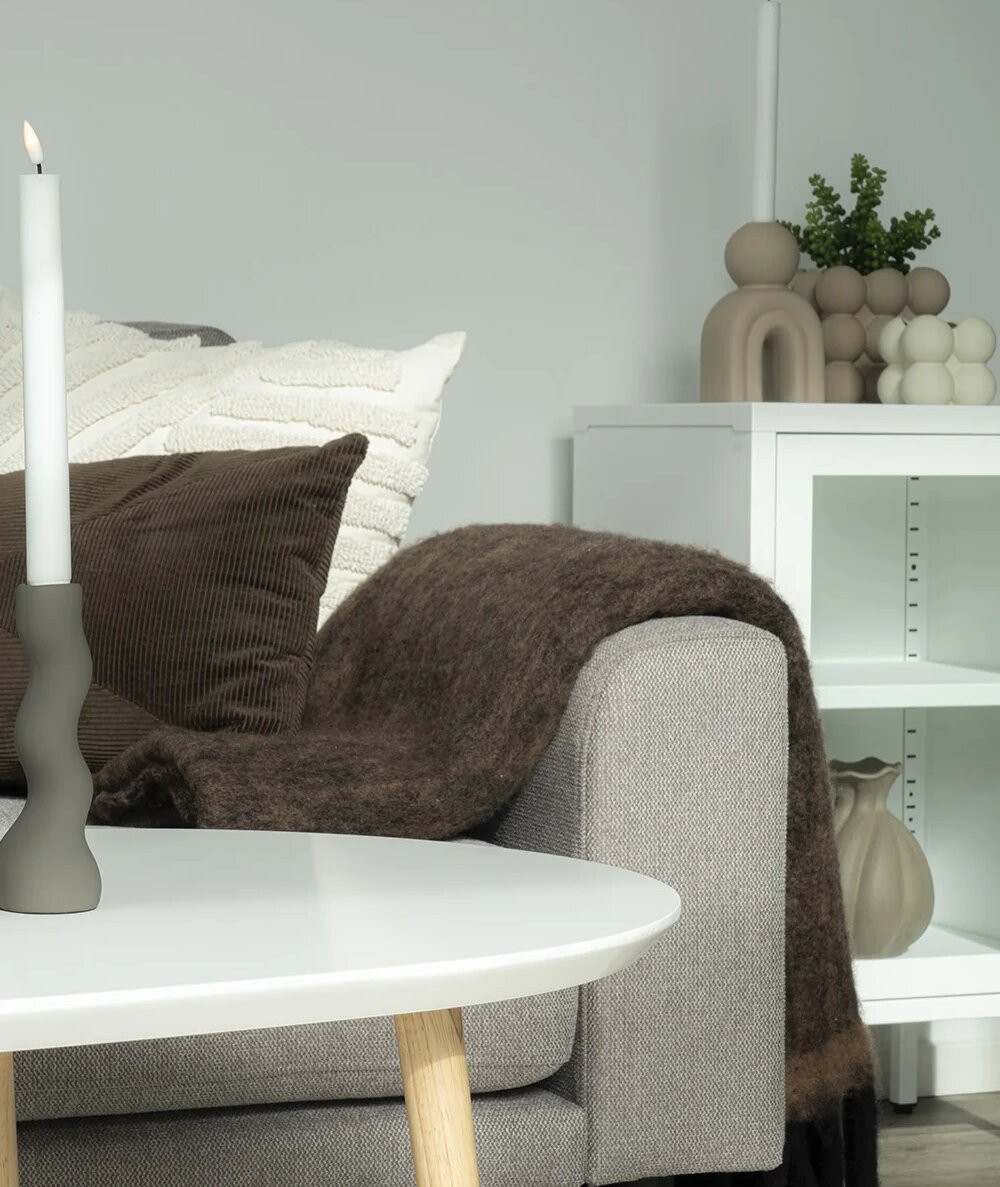 Det brune vamsede Sophie plaid hygger op i hjemmet. Det bidrager til en varm og indbydende indretning. Plaiden måler B130 x L170 cm og er lavet i uld, nylon, polyester og akryl.