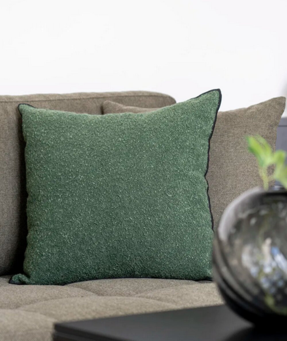 Violette puden har et enkelt design i en grøn farve. Forsiden er grøn og bagsiden er sort, som gør puden alsidig. På forsiden af puden er den lavet i 90% Polyester og 10% Akryl. På bagsiden er puden lavet i 55% Bomuld og 45% polyester. Puden måler B45 x L45 cm.