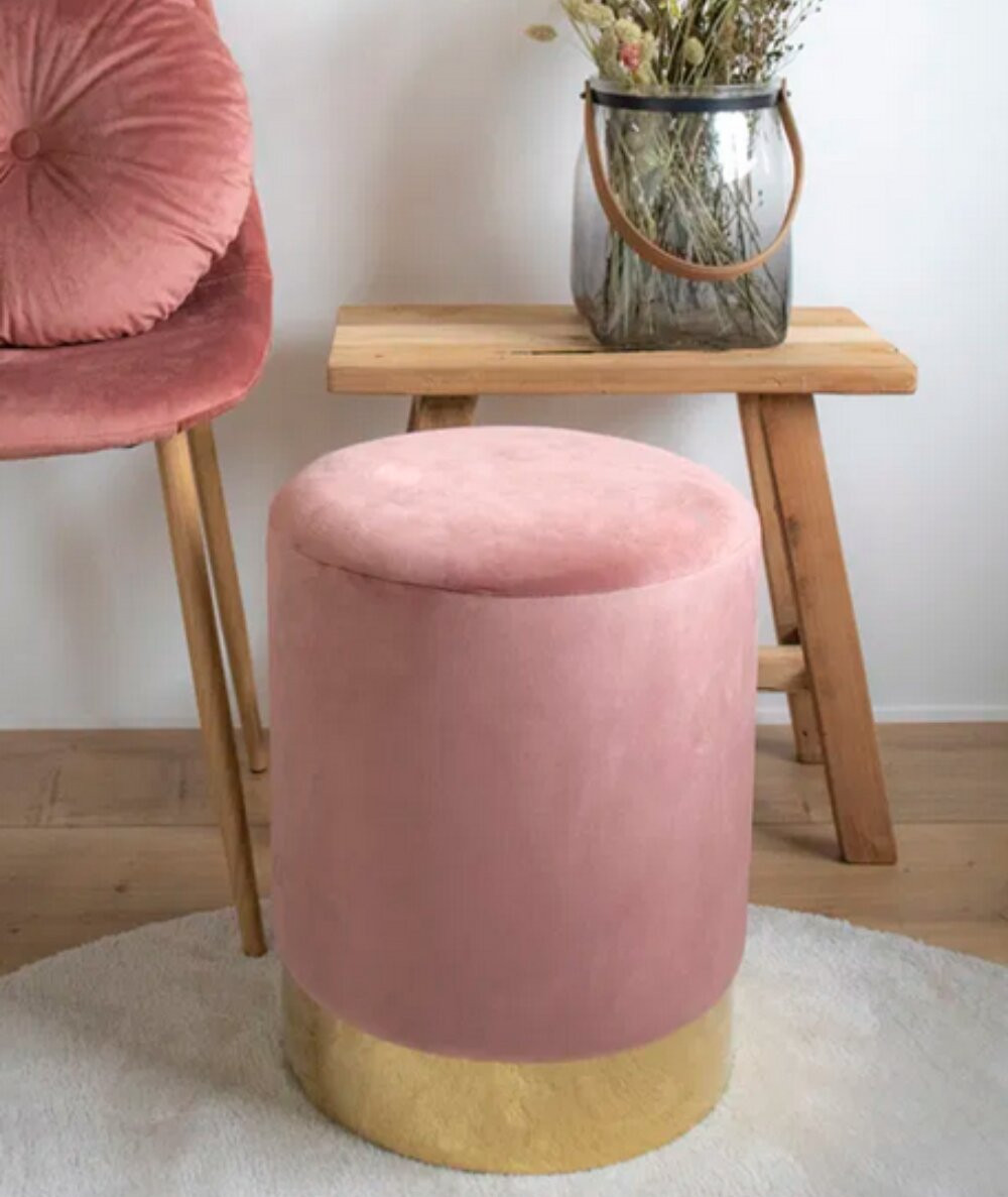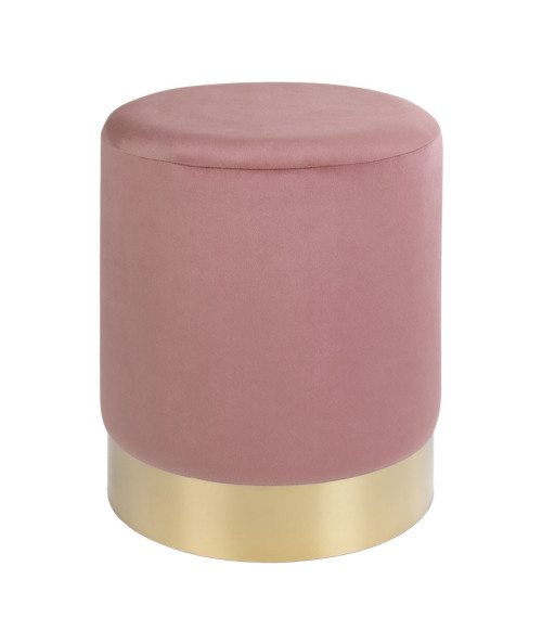 Gamby Puf - Puf i rosa velour med messing farvet kant