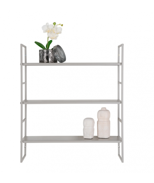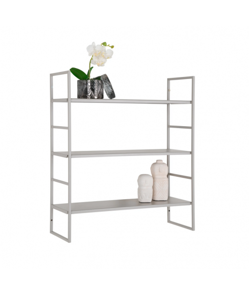 Skab et stilfuldt og hyggeligt stilleben på vores fine Beja væghylde. Hyg op med dine yndlings nips og skab personlig indretning. Den flotte væghylde er fremstillet af stål i en kølig grå farve og udstyret med tre hylder. Væghylden måler 48x17x55 cm og tilbyder fin plads til opbevaring i ethvert rum. Du kan også bruge den til, at organisere dine toiletartikler/makeup på badeværelset. Med den fine Beja væghylde tilføjer du både funktionalitet og æstetik til din indretning.