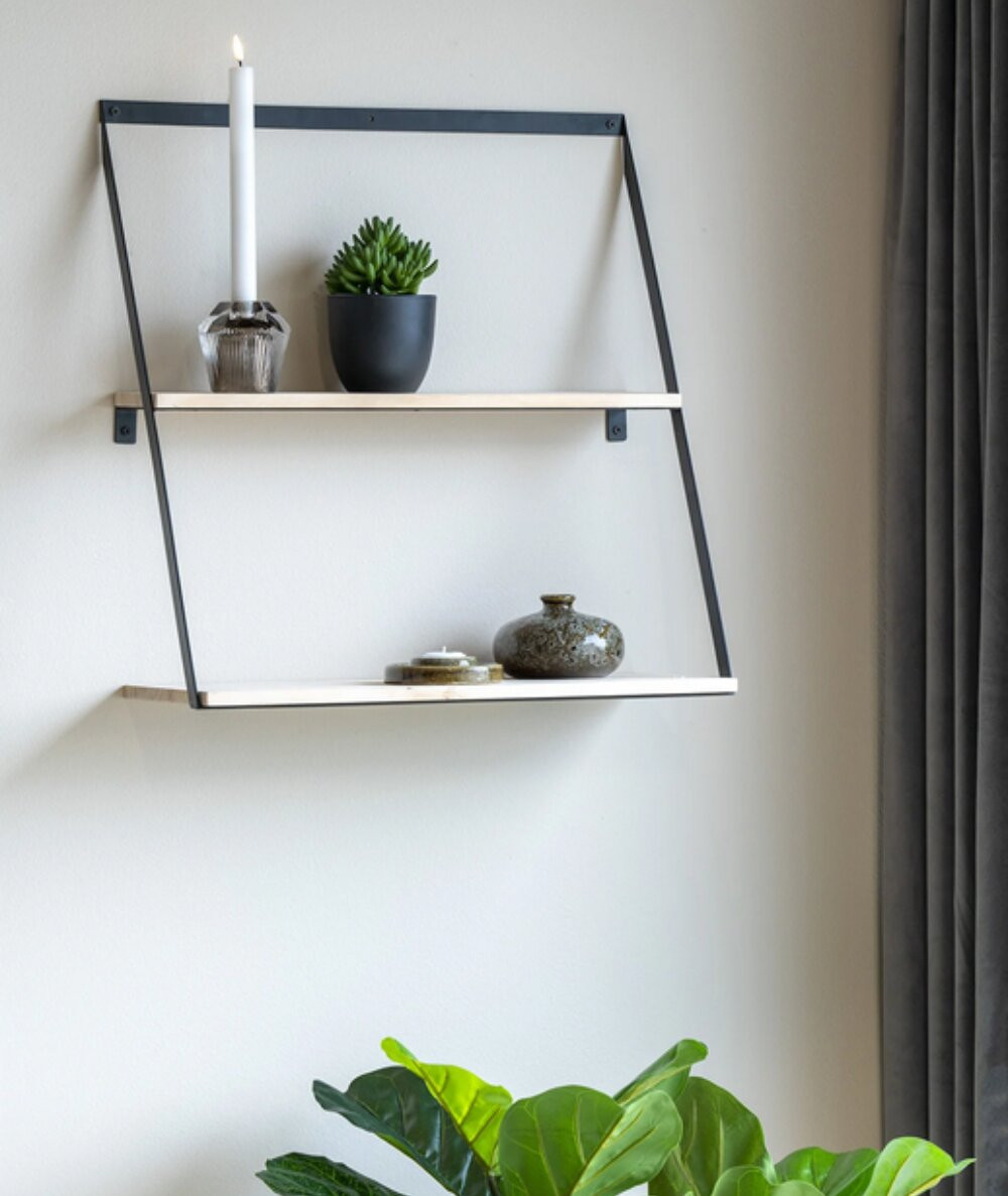Ønsker du at vide dine vaser frem på en anderledes måde, så se denne fine Fyrtræs hylde med sort metal beslag. Den har et anderledes design, som er med til at skabe blikfang i hjemmet. Stil dine yndlings vaser på hylden og lad den skabe hyggelig stemning i dit hjem. Hylden måler B50 x L21 x H52 cm.