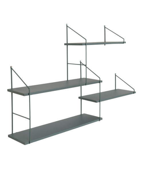 Kan du godt lide farver i din indretning så se engang denne fine Harlem hylde fra House Nordic. Hylderne er grønne og hænger forskudt af hinanden. Det giver et legende udtryk, hvor du kan udstille dine fine nipsting. Hylden er lavet af stål og kejsertræ og måler B99xL17.5xH62 cm.