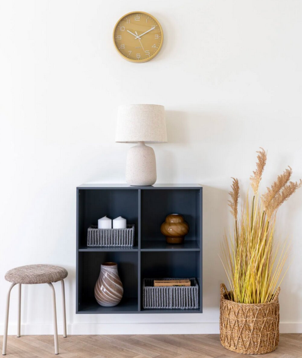 Med fire rummelige opbevaringsrum giver Horne væghylden dig mulighed for at udstille dine yndlingsgenstande, som f.eks. vaser, bøger eller dekorative kurve, mens den også fungerer som en praktisk opbevaringsløsning. Hyldens enkle, men elegante design gør den let at integrere i forskellige rum som stuen, soveværelset eller kontoret. Den mørke grå farve tilføjer en sofistikeret touch til rummet og kan nemt matches med andre møbler og farvetoner.