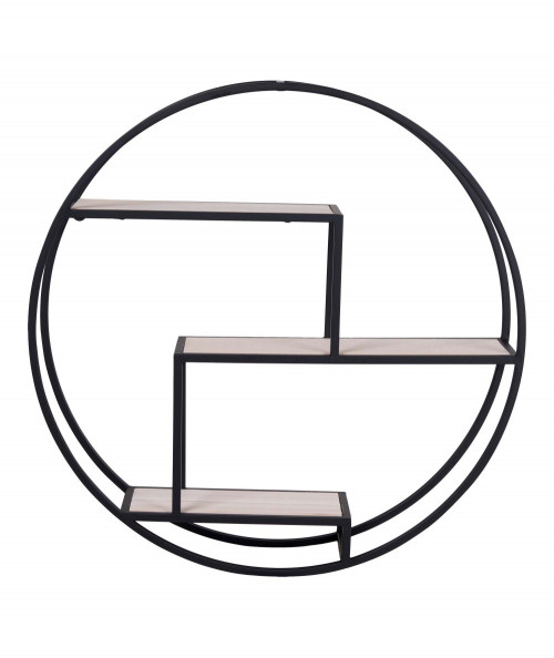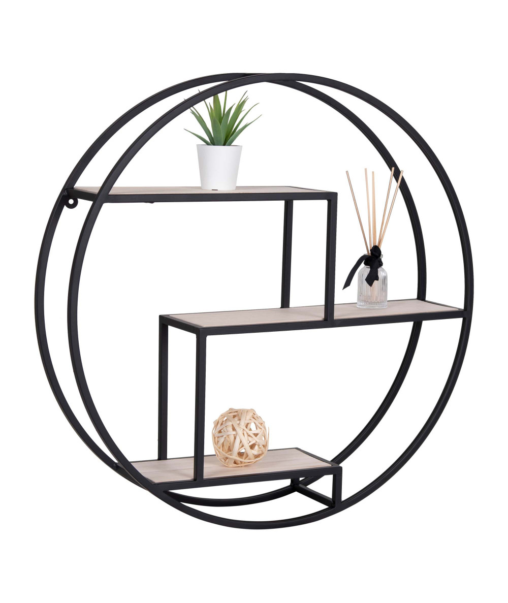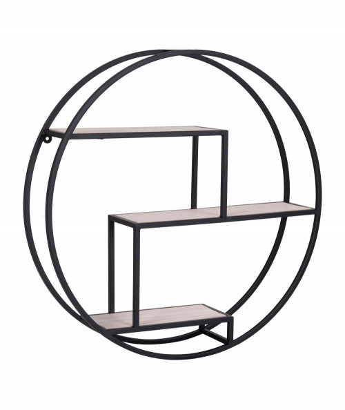 Rotterdam Hylde - Rund hylde med sort ramme og træ