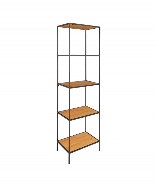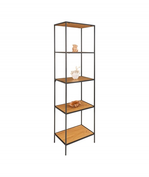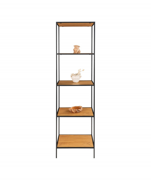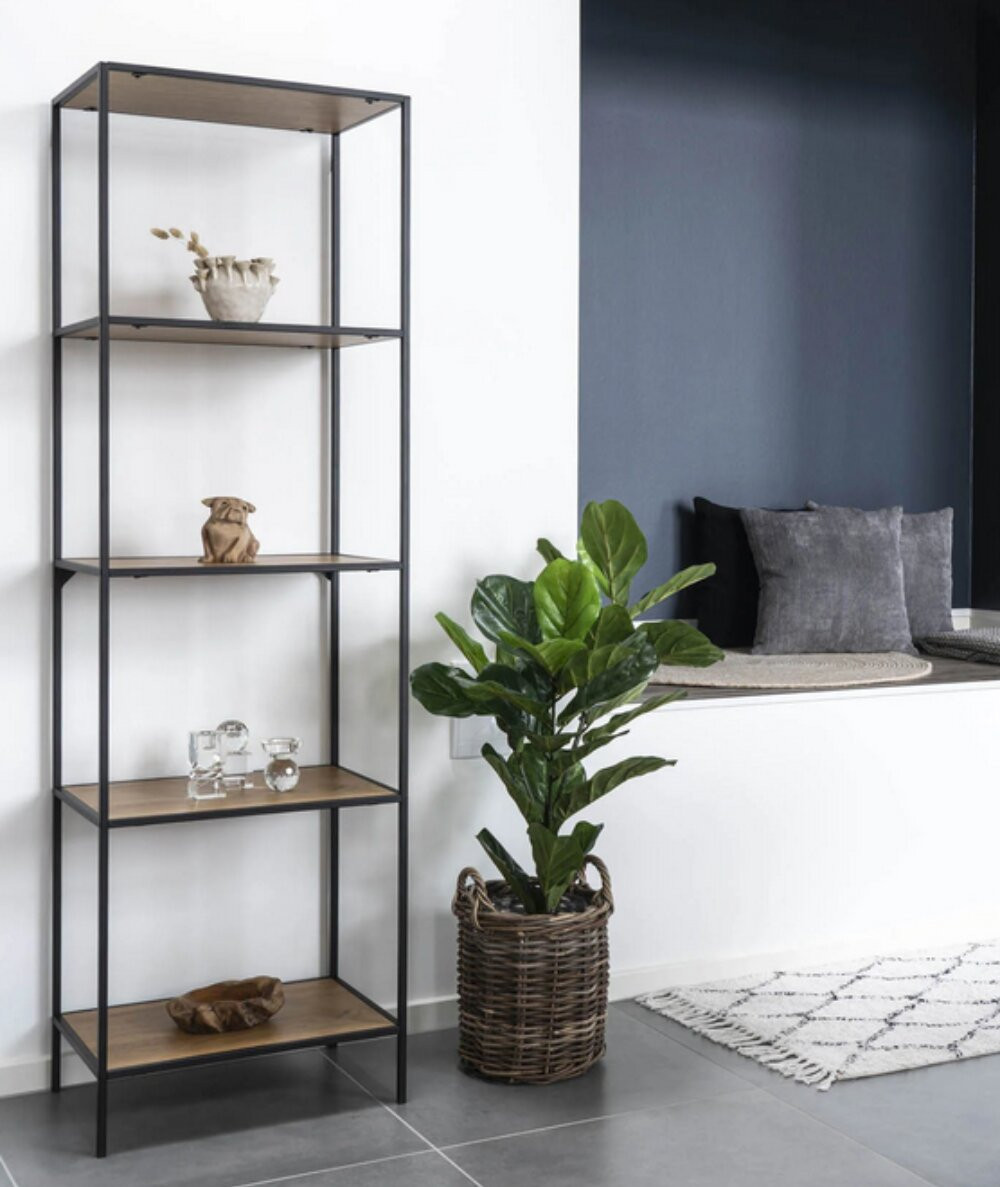 Vita reol med sort ramme og 5 egetræslook hylder