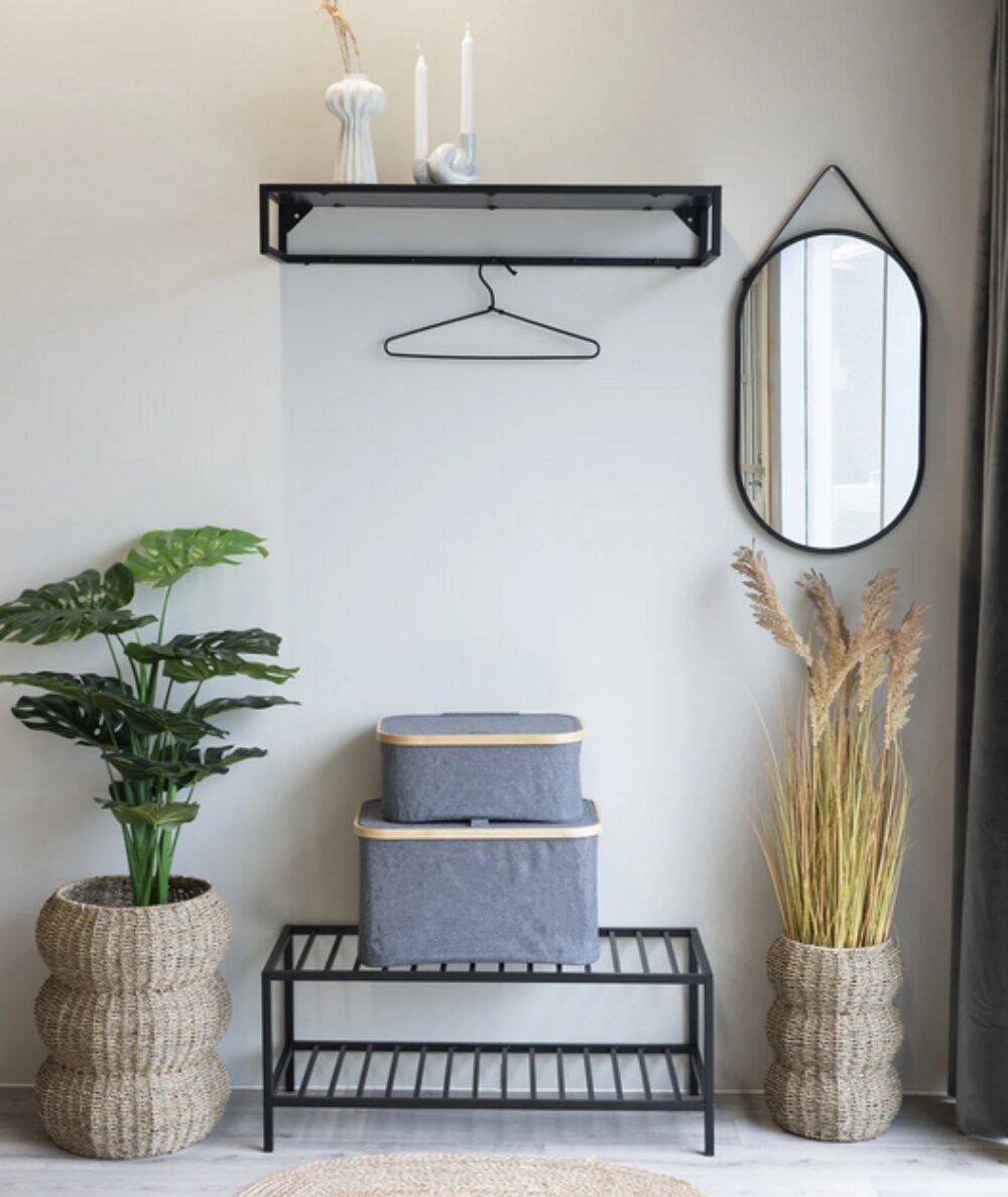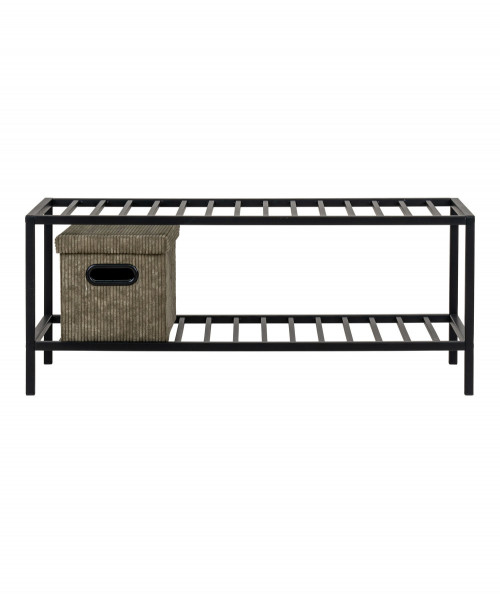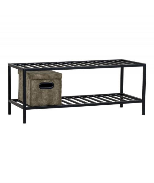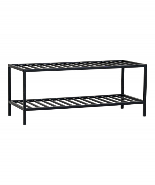 Ønsker du at have orden i dine sko i din entre så se engang denne fine Vita skohylde. Hylden er lavet i sort stål og har et enkelt og minimalistisk udtryk. Skohylden måler L34 x H32 x B79 cm. Stil evt. en opbevaringskurv på skohylden, så du kan gemme huer, handsker mm væk.