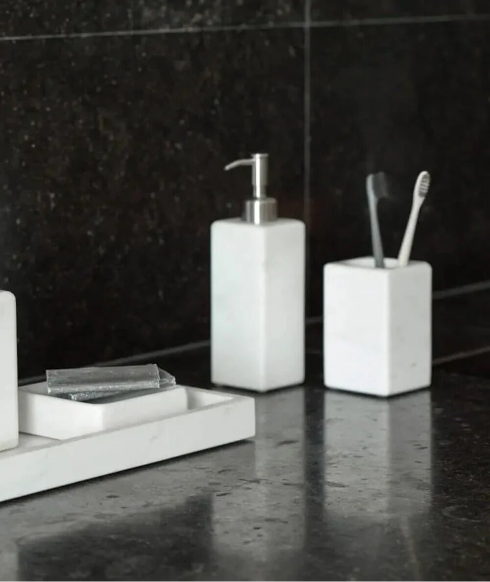 Den flotte Hammam sæbedispenser fra Aquanova er lavet i hvid marmor. Sæbedispenseren kan variere i udseende da 2 ikke er ens. Det kommer helt an på hvor i marmorklippe stenen er taget fra. Sæbedispenseren har et eksklusivt look og står smukt på badeværelset. Sæbedispenseren er en del af Hammam serien, så der findes bakker, tandkrus, sæbeskål og meget mere i samme serie. Sæbedispenseren har et flot enkelt design med rustfrit stål pumpe.