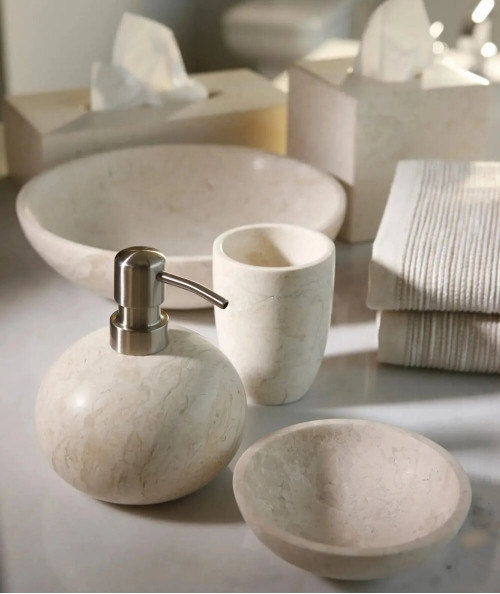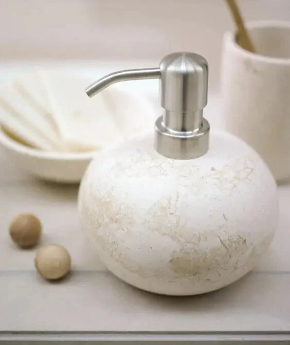 Den flotte sæbedispenser er en del af badserien Luxor fra Aquanova. Sæbedispenseren er lavet i ægte marmor i farven beige. Dets design er rundt og pumpen er lavet i rustfrit stål. Kvaliteten er høj og byder ind med skøn wellness stemning på dit badeværelse.