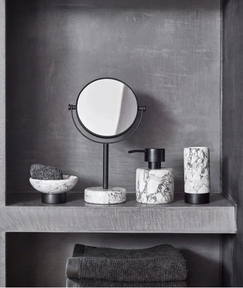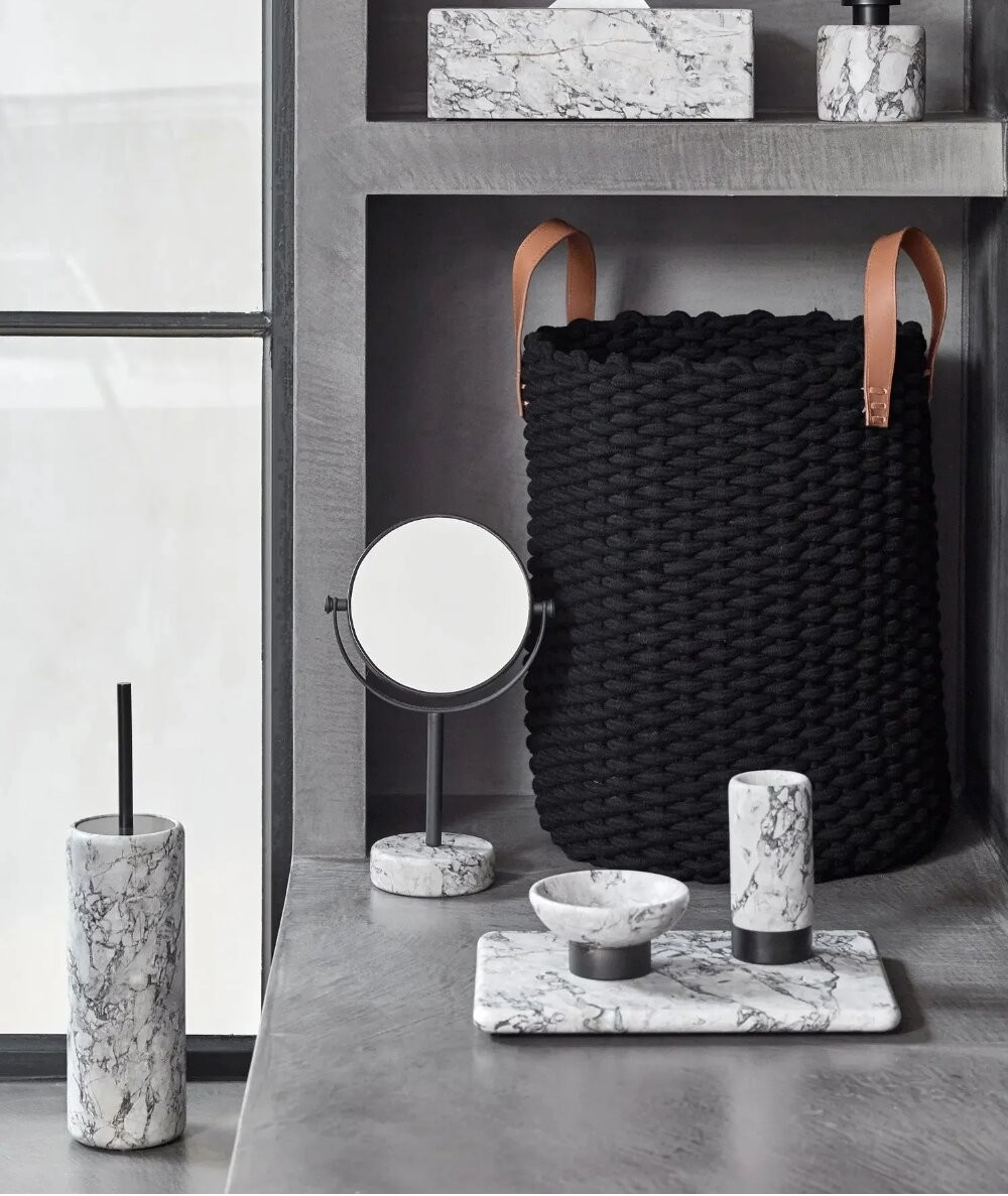 Den flotte sæbedispenser fra Aquanova hører til den fine Nero badeværelses serie af sæbedispenser, toiletbørsteholder, spejl, sæbeskål, bakke og tandkrus. Det er en meget elegant og flot serie, der passer smukt ind til badeværelset. Ønsker du wellness stemning på badeværelset, så er denne serie helt oplagt. Sæbedispenseren er lavet af håndlavet marmor, hvilket gør den unik, da strukturen aldrig vil være 100 % ens på to forskellige sæbedispensere. Sæbepumpen er lavet i rustfrit stål, så der vil aldrig forekomme rust, og den er belagt med messing overflade.