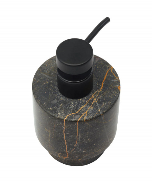Porto har en solid, rund base, der sikrer dens stabilitet på enhver overflade. På toppen finder du en højkvalitets rustfrit stål pumpe, der giver den perfekte mængde sæbe hver gang. Pumpen er designet i en matsort, der supplerer den grå marmor perfekt, og skaber en harmonisk balance mellem det naturlige og det industrielle.