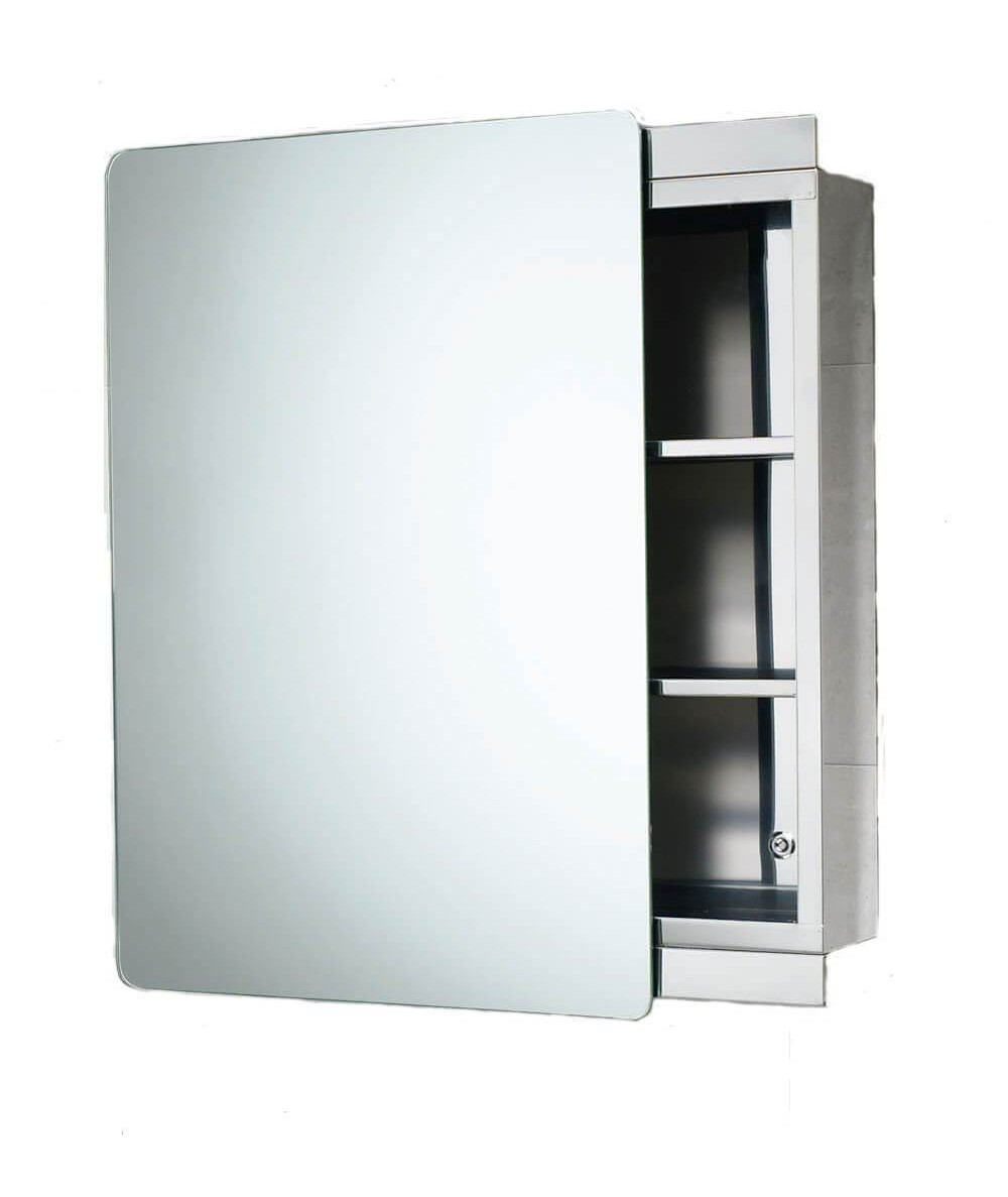 Et flot Kora spejlskab med poleret kanter. Skabet har et minimalistisk design og giver et flot udtryk på badeværelset. Der er 2 hylder og en skydedør så du kan gemme dine ting væk. Skabet er rustfrit og kan højre og venstre hænges. Et fint spejlskab som skaber elegance og enkelthed i hjemmet.