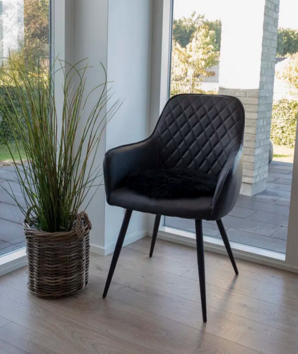Elsker du den skandinaviske/nordiske hyggelige indretningsstil så se engang dette smukke Ægte New Zealandsk lammeskindshynde i sort. Læg hynden på stolen eller bænken og skab hygge og varme.