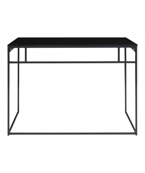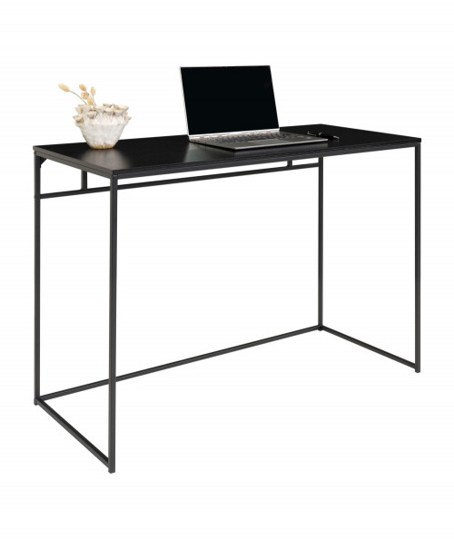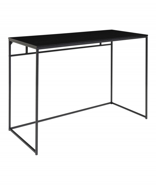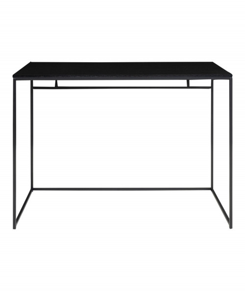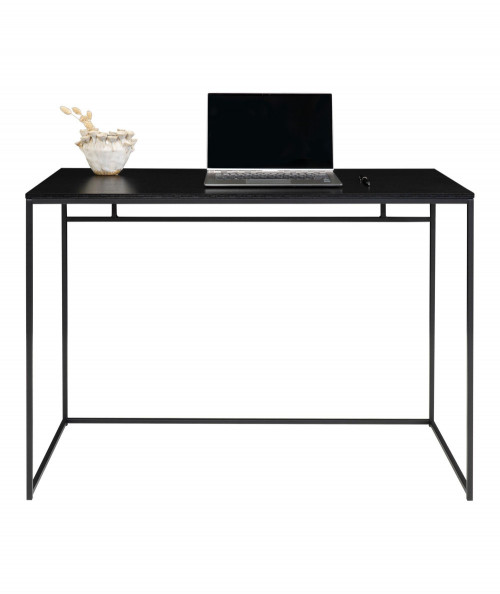Er du til den minimalistiske stil, og ønsker at skabe et enkelt og fint kontor så se engang dette fine og elegante skrivebord. Skrivebordet er fra House Nordic og har en smuk stålkonstruktion. Har du ikke så meget plads i dit hjem, så kan den sagtens stå i stuen da dens design ikke er bombastisk men let. Bordets bordplade er i sort melaminfolie og har sorte stål ben. Bordet tilføjer du nemt personlighed ved, at style det med de ting du holder af i din indretning. Bordet fås også med træ bordplade, hvis du ønsker at tilføje dit hjem et nordisk præg.