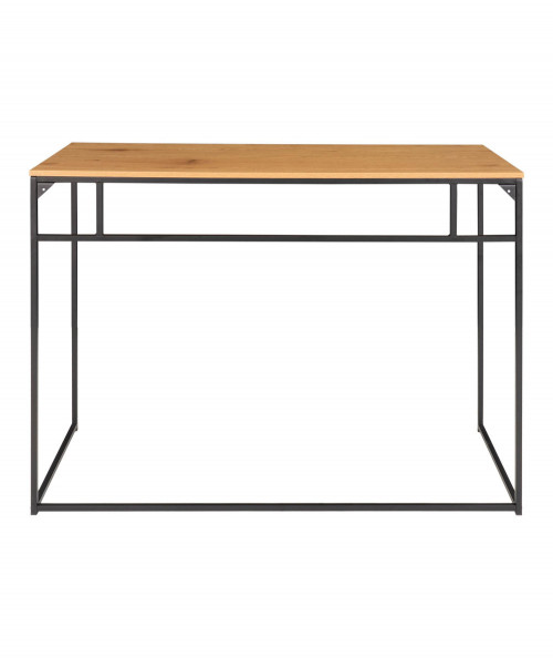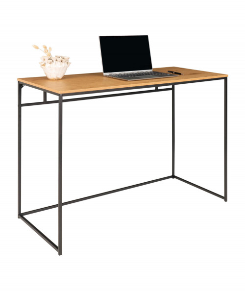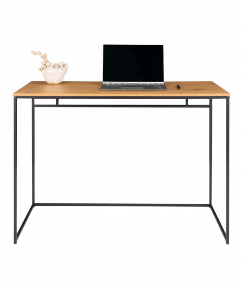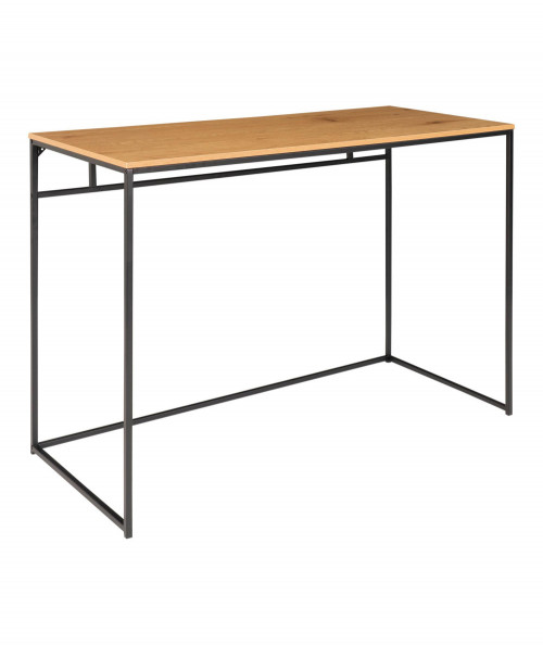 Er du til den minimalistiske stil, og ønsker at skabe et enkelt og fint kontor så se engang dette fine og elegante skrivebord. Skrivebordet er fra House Nordic og har en smuk stålkonstruktion. Har du ikke så meget plads i dit hjem, så kan den sagtens stå i stuen da dens design ikke er bombastisk men let. Bordets bordplade er i træ melaminfolie og har sorte stål ben. Bordet tilføjer du nemt personlighed ved, at style det med de ting du holder af i din indretning. Bordet fås også med sort bordplade, hvis du ønsker at tilføje dit hjem et nordisk præg.
