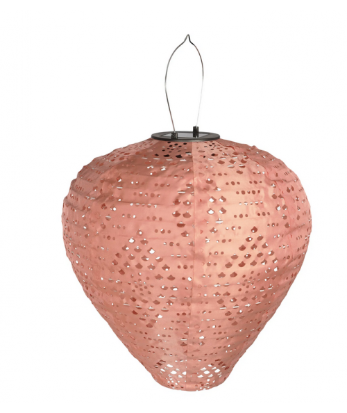Skab en smuk og stemningsfuld belysning med denne elegante genopladelige solcellelanterne i en flot rosa farve. Perfekt til at skabe en hyggelig atmosfære på terrassen, i haven eller altanen. Med sit perforerede design kaster lanternen et flot lysspil, der skaber en varm og indbydende stemning, når mørket falder på.