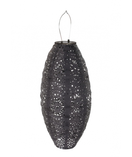 Skab en smuk og stemningsfuld belysning med denne elegante genopladelige solcellelanterne i en flot grå farve. Perfekt til at skabe en hyggelig atmosfære på terrassen, i haven eller altanen. Med sit perforerede design kaster lanternen et flot lysspil, der skaber en varm og indbydende stemning, når mørket falder på.
