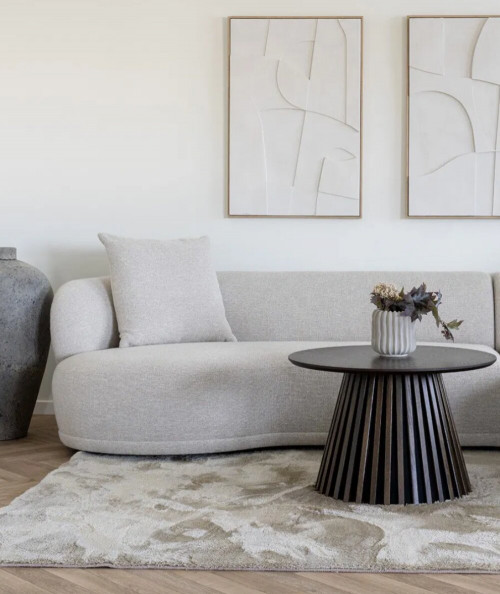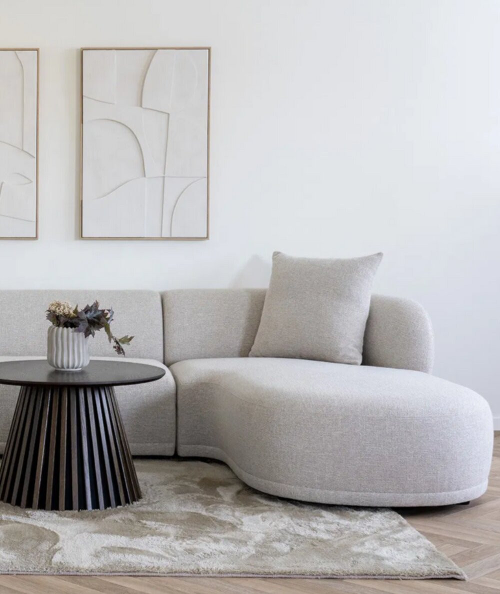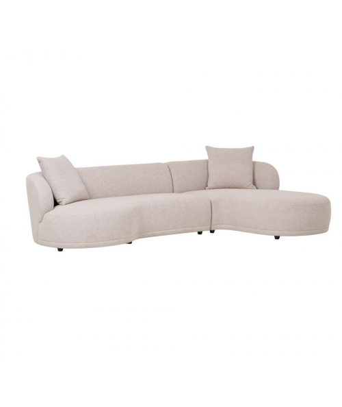 Kingston Sofaen har en unik højre vendt form, der giver den et organisk og moderne look. Sofaen er polstret i en smuk naturlig nuance, der let integreres i forskellige indretningsstile. Med et yderstof af 72% polyester og 28% akryl er den både holdbar og blød at røre ved, perfekt til daglig brug.