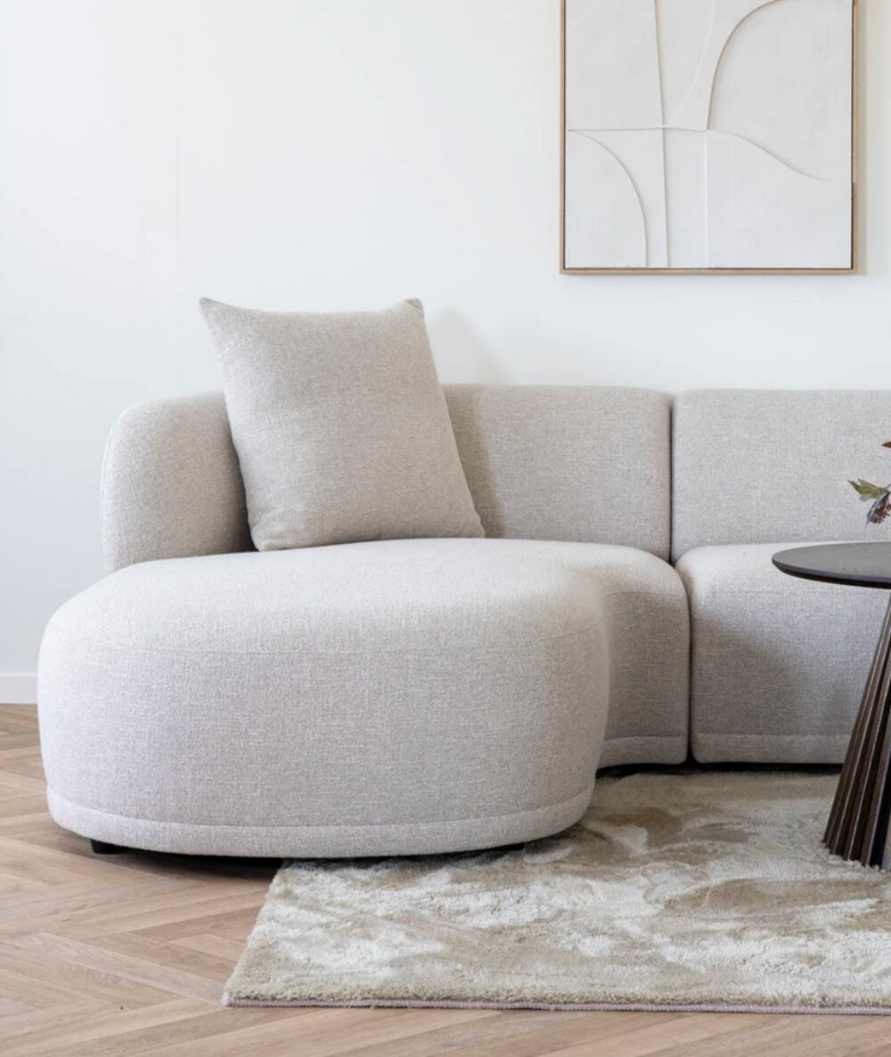 Kingston Sofaen har en unik venstrevendt form, der giver den et organisk og moderne look. Sofaen er polstret i en smuk naturlig nuance, der let integreres i forskellige indretningsstile. Med et yderstof af 72% polyester og 28% akryl er den både holdbar og blød at røre ved, perfekt til daglig brug.