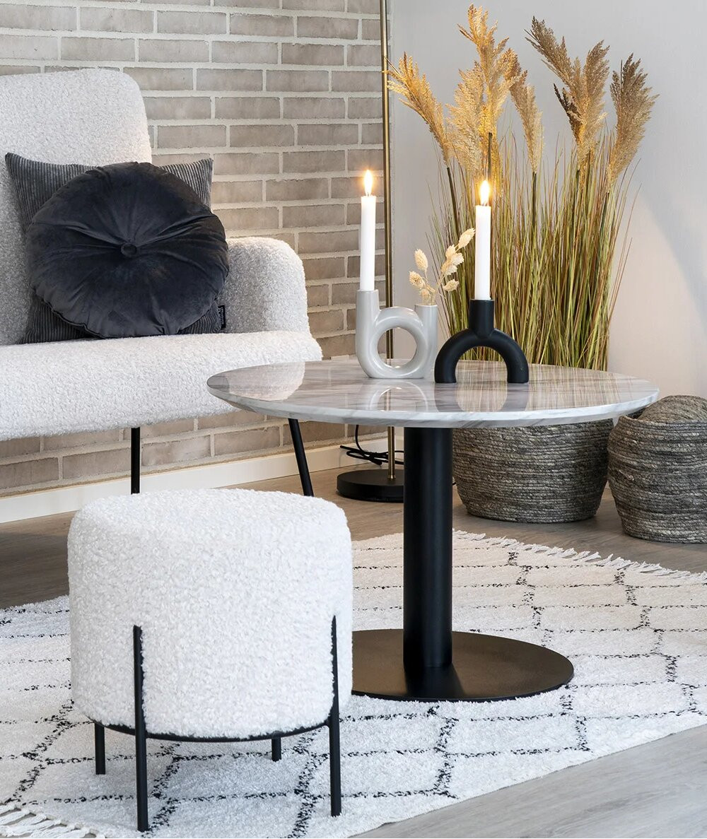 Bolzano sofabordet er et smukt og elegant marmor sofabord i et elegant og flot design. Sofabordet har sorte ben, hvilket står smukt i kontrast til marmor looket til bordpladen. Sofabordet er fra House Nordic og hygger op på en stilfuld og elegant måde. Sofabordet fås også med flotte messing ben og fås i 3 forskellige størrelser.